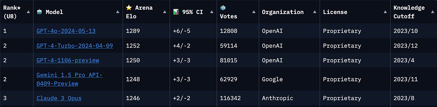 GPT-4o is impressive but not this impressive. The teaser did its job: people sometimes picked the good-gpt2-chatbot just because of the hype. Now we have a more realistic picture of the model’s performance: